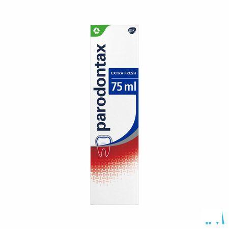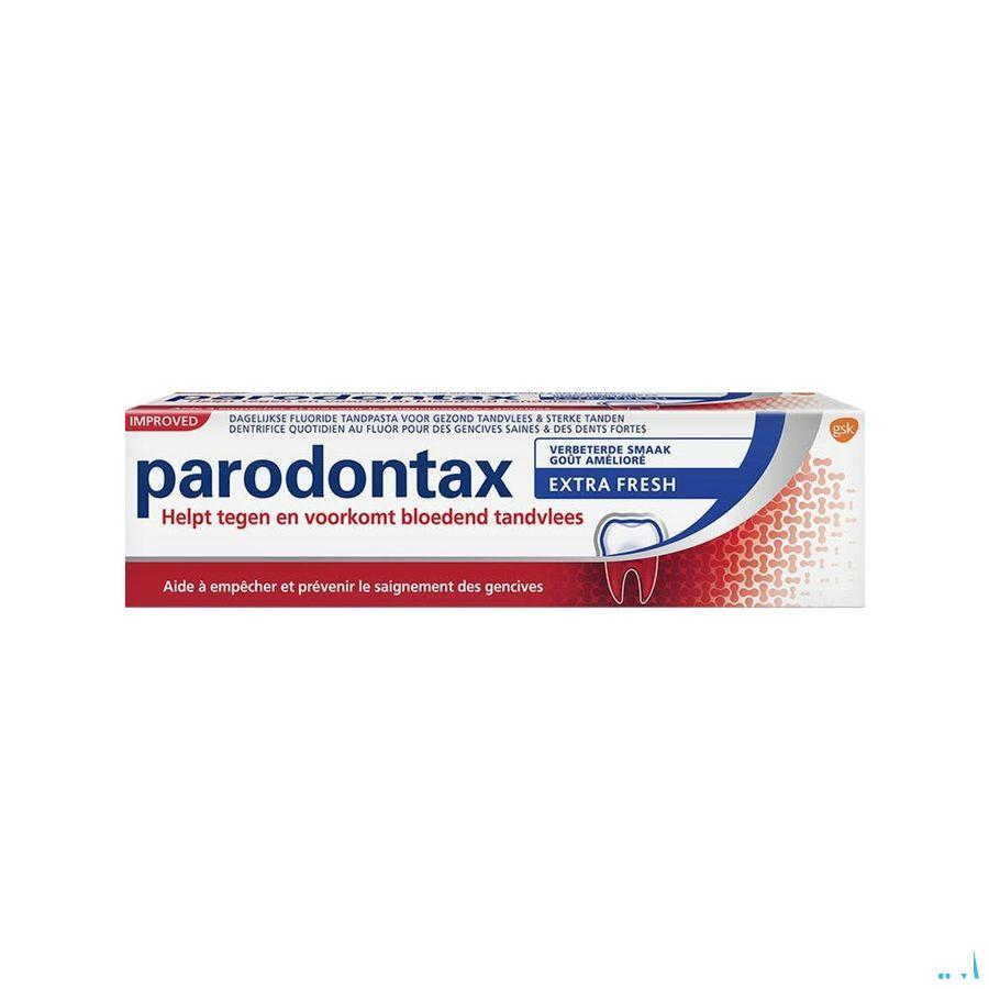 Parodontax Extra Fresh dagelijkse tandpasta: • Helpt tegen en voorkomt bloedend tandvlees• 4x effectiever dan een gewone tandpasta* in het verwijderen van tandplak 4x effectiever dan een gewone tandpasta* in het verwijderen van tandplak bacteriën.• Houdt je mond urenlang fris• Met verbeterde smaak• Dagelijkse natriumbicarbonaat & fluoride tandpasta voor gezond tandvlees & sterke tanden• Het is klinisch bewezen dat dagelijks poetsen met Parodontax helpt tegen bloedend tandvlees en tandvlees problemen voorkomt bij 2x per dag poetsen, na 6 maanden gebruik
