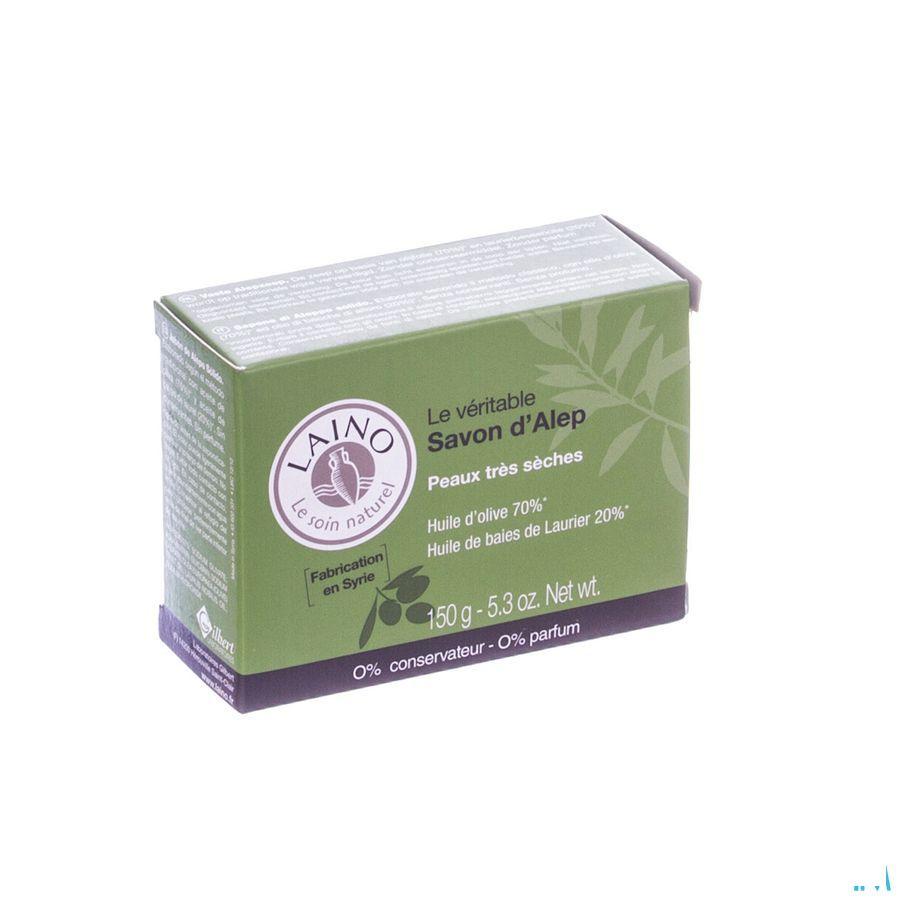 Le Savon d'Alep Laino, 100% naturel, est fabriqué selon la même recette, depuis sa création, dans la cité d'Alep en Syrie. Sans savon, sans parfum, sans conservateur.