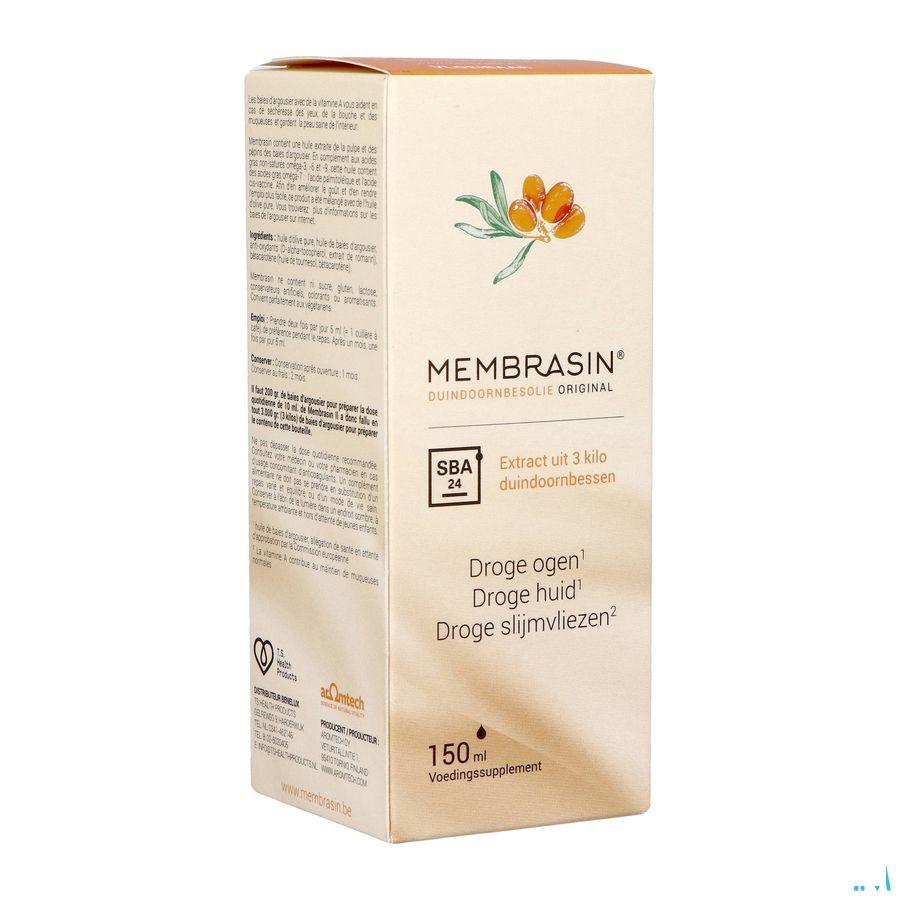 Membrasin® est un extrait d'huile pure provenant des pépins et de la chair des baies d'argousier. Cette huile 100 % naturelle regorge de vitamines et d'acides gras oméga qui nourrissent littéralement la peau de l'intérieur et maintiennent son équilibre hydrique interne et son niveau de collagène. Et plus son niveau de collagène est élevé, plus la peau est ferme et élastique ! Membrasin® huile de baies d'argousier est disponible sous forme liquide et sous forme de gélules.