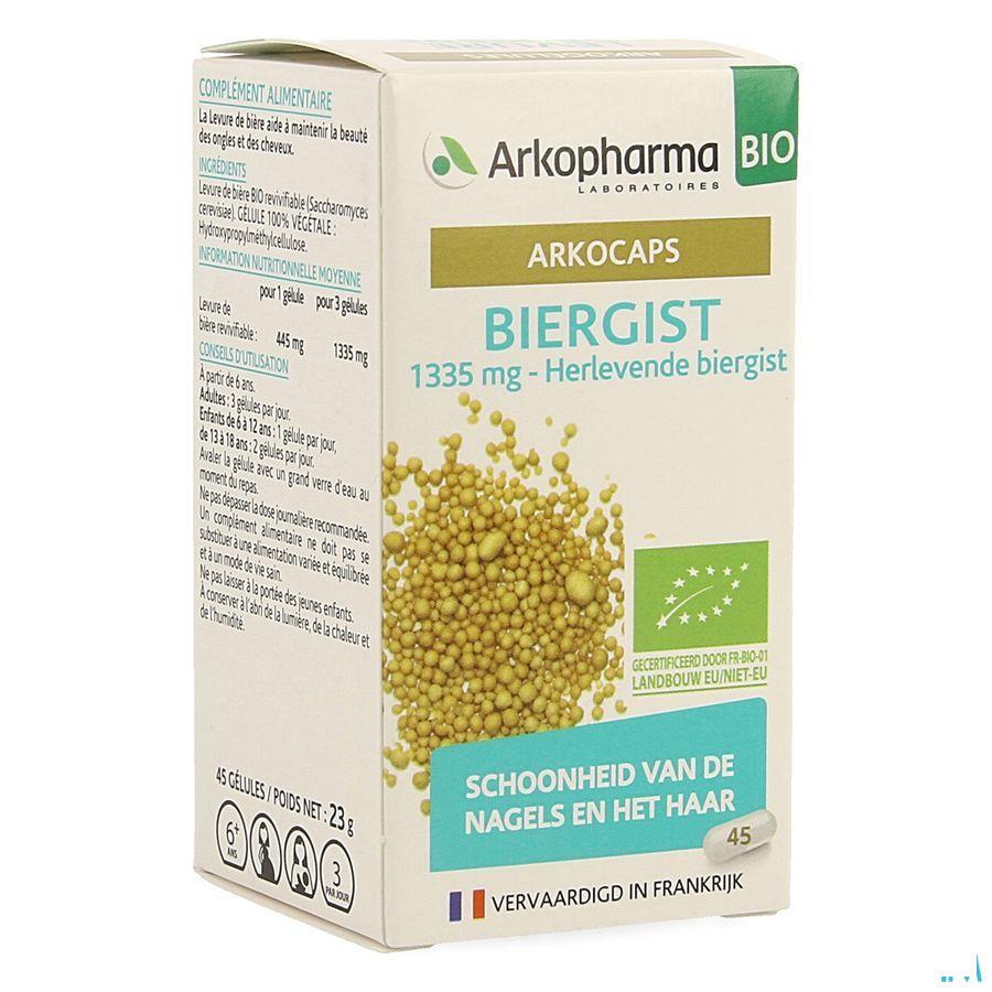 Détail des ingrédients Levure de bière BIO revivifiable (Saccharomyces cerevisiae). Enveloppe d'origine 100% végétale : Hydroxypropylméthylcellulose. Informations nutritionnelles moyennes Pour 1 gélule Pour 3 gélules Levure de bière revivifiable 445 mg 1335 mg